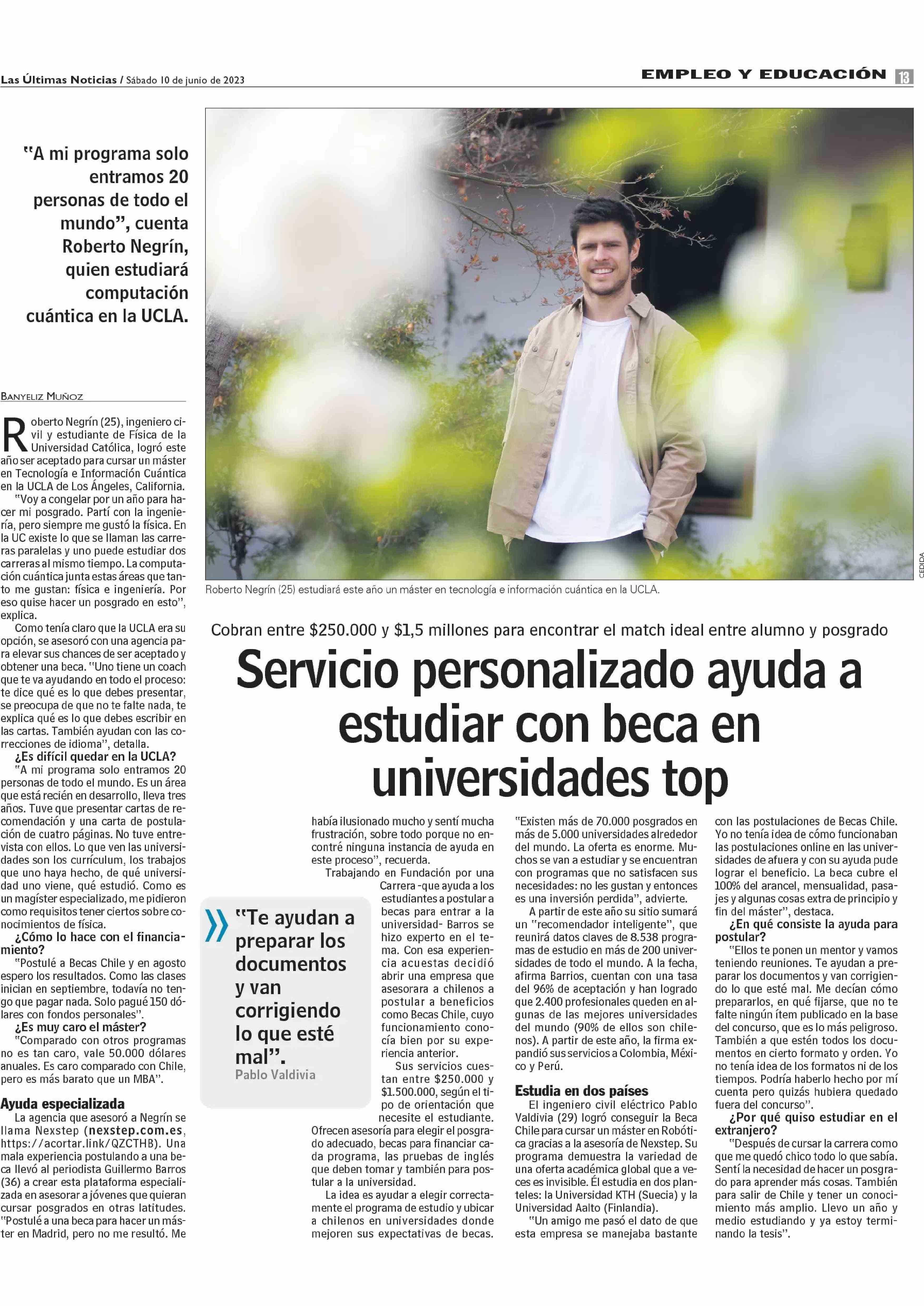 Los chicos de Nexstep me ayudaron a realizar una excelente postulación para el programa que deseaba y para Becas Chile, los recomiendo 100%. Su asesoría es muy personalizada y son super detallistas con respecto a todos los documentos necesarios.